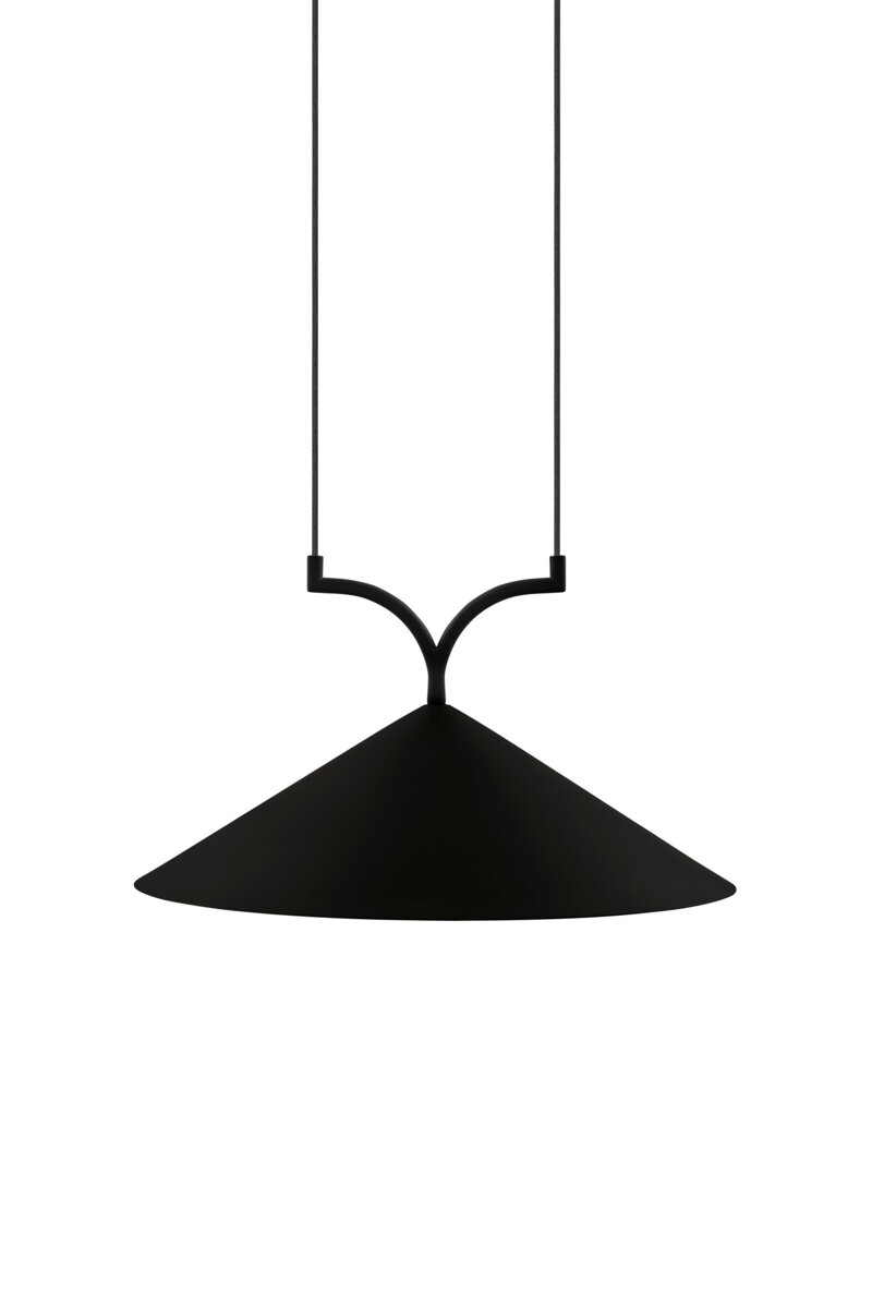 Závesná lampa Curve predstavuje dokonalú synergiu medzi funkčným umením a svetlom, pričom jej odvážny grafický tvar okamžite definuje charakter každej modernej miestnosti. Tento výnimočný kúsok vsádza na pôsobivý kontrast, v ktorom sa jemné organické krivky harmonicky stretávajú s ostrými líniami triangulárneho tienidla, čím vytvárajú nadčasový objekt vhodný do každého súčasného interiéru. Lampa je vyrobená z kvalitného matne lakovaného kovu, ktorý mu dodáva luxusný vzhľad a zaručuje dlhú životnosť.