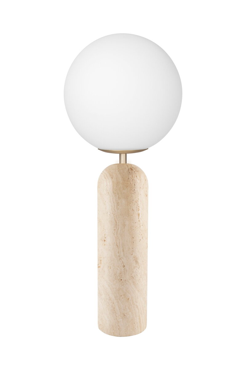 Stolová lampa Torrano majstrovsky kombinuje ušľachtilé materiály s jemnými, oblými tvarmi. Jej dominantným prvkom je základňa z masívneho prírodného kameňa, ktorá dodáva lampe potrebnú váhu a nezameniteľný charakter. Keďže kameň je prírodný materiál, jeho farba a žilkovanie sa pri každom kuse líšia – to znamená, že každá lampa je absolútnym unikátom s vlastným, neopakovateľným vzorom.