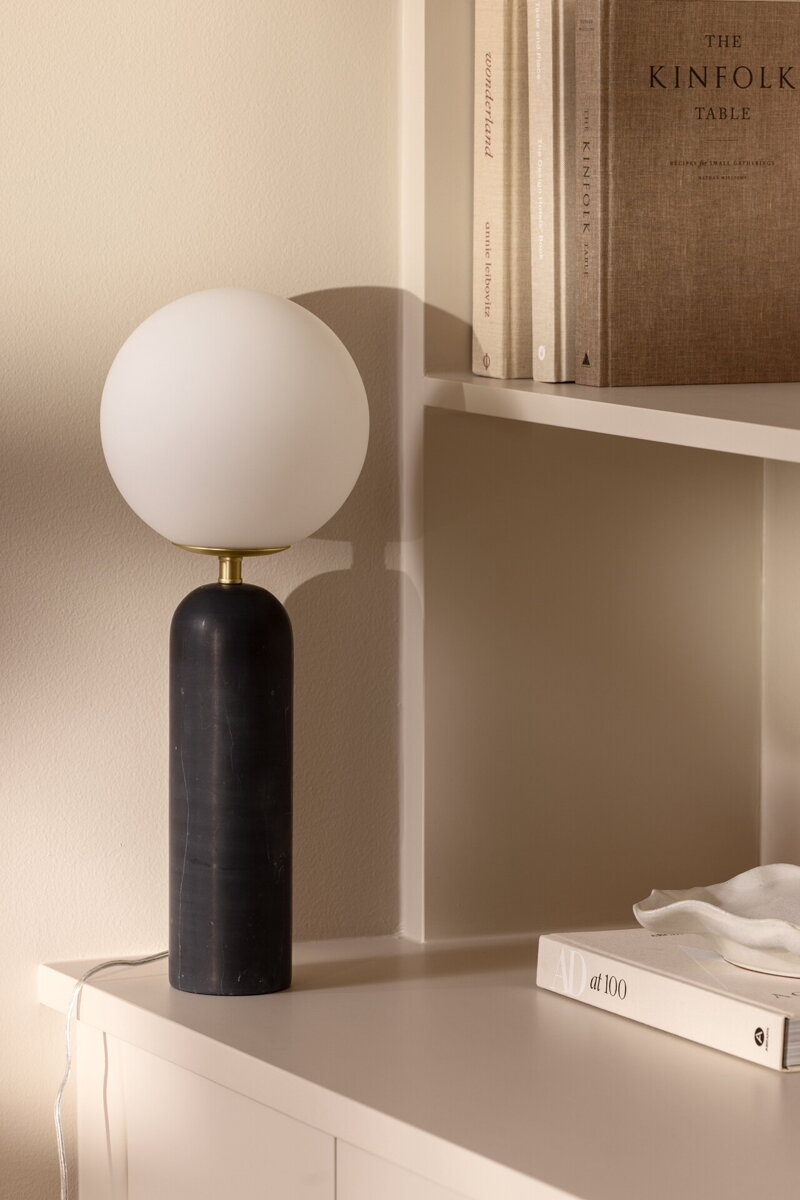 Stolová lampa Torrano majstrovsky kombinuje ušľachtilé materiály s jemnými, oblými tvarmi. Jej dominantným prvkom je základňa z masívneho prírodného kameňa, ktorá dodáva lampe potrebnú váhu a nezameniteľný charakter. Keďže kameň je prírodný materiál, jeho farba a žilkovanie sa pri každom kuse líšia – to znamená, že každá lampa je absolútnym unikátom s vlastným, neopakovateľným vzorom.