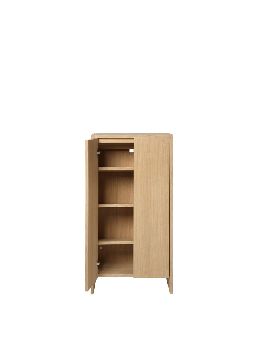 Predsieňová skrinka Parcel bola navrhnutá ako multifunkčný systém, ktorý sa dokonale prispôsobí potrebám mestských interiérov, garzóniek či bytov s obmedzeným počtom úložných políc. Základom jej nadčasového dizajnu je precízne spracovaná dubová dýha s certifikáciou FSC™ Mix, ktorá interiéru dodáva prirodzené teplo a zaručuje dlhú životnosť s ohľadom na životné prostredie.